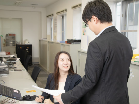 総務部では経理や人事活動を通して、社員の働きやすさや福利厚生などの整備を行っています。営業事務では、営業ツールになる資料作成や他部門との連携を取れる仕組みづくりを行っています。社内での活動が多く感じられますが、技術展示会への参加や営業先への同行など積極的に外部に出て、情報収集や発信を行うのもSHINTORAの特徴です。